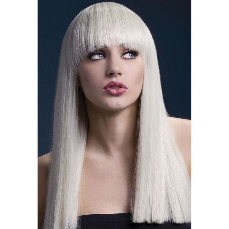 Alexa si presenta di un biondo chiarissimo, lunga e liscia con frangia folta.