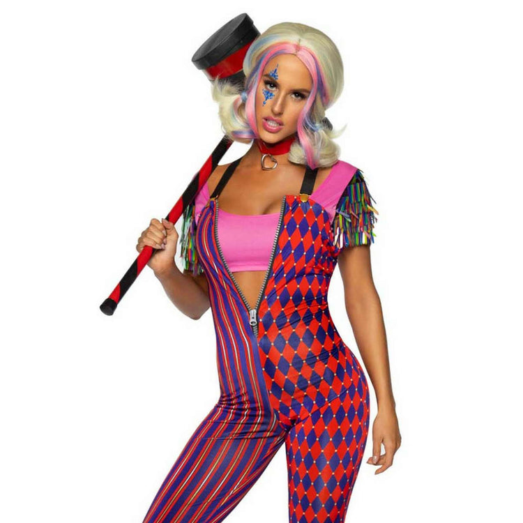 3 Pezzi: include top rosa con maniche colorate, tuta multicolor e collarino con cuore.