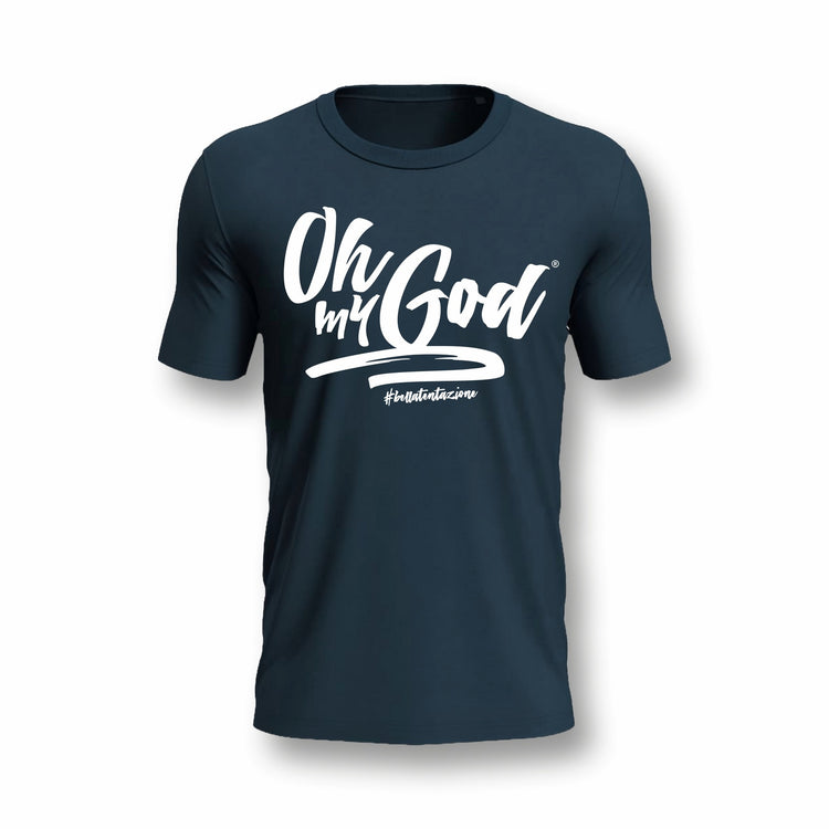 T-shirt "Oh My God" uomo nera 160 g/m² 100% cotone ring-spun, girocollo a costine e taglio sagomato.