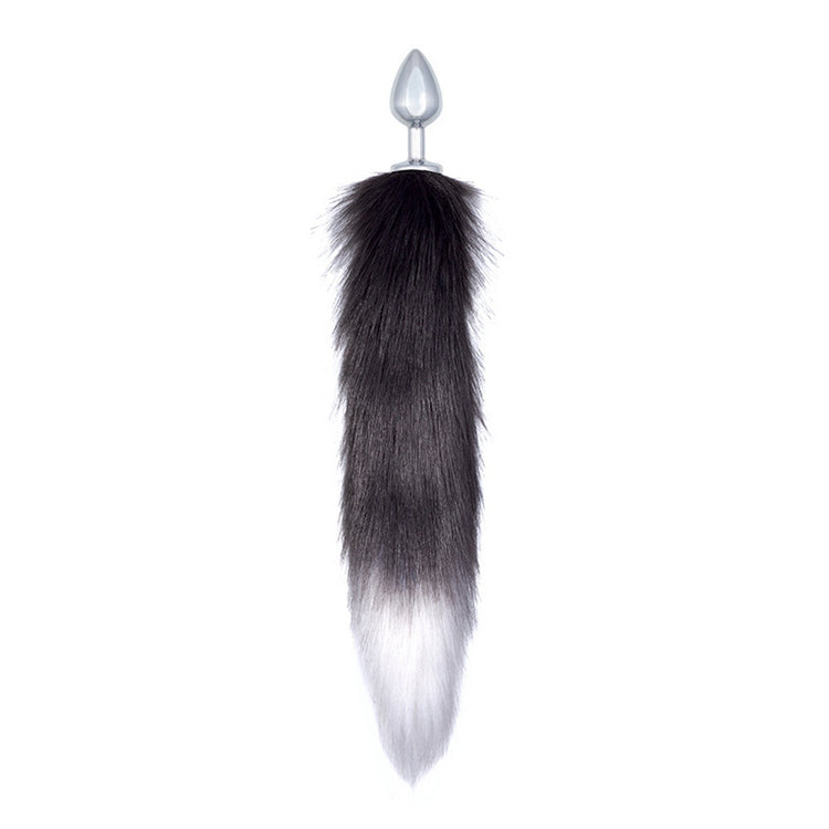 Plug anale in metallo igienico simile all'argento con una colorata coda sulla parte finale. Il plug ha una forma liscia che consente un facile inserimento e un comodo utilizzo. Dotato di una base restrittiva per un utilizzo sicuro.