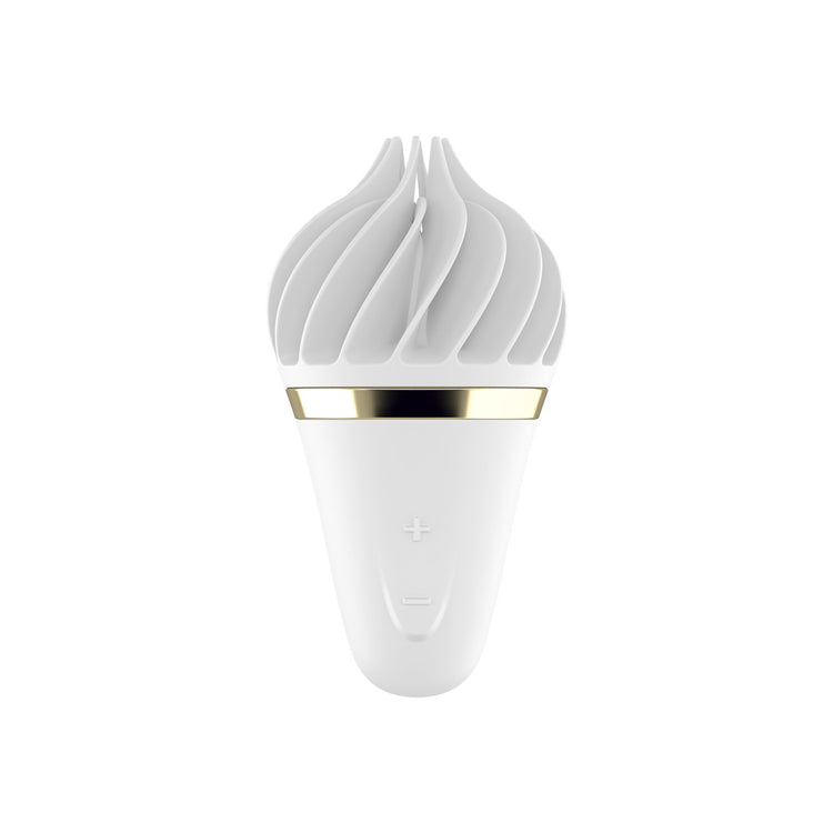 Satisfyer Sweet Treat è probabilmente il più carino dei massaggiatori clitoridei, perché questo cono gelato ha tutto ciò che serve: con le lamelle rotanti porta il tuo clitoride a orgasmi che non avresti mai immaginato. Il silicone piacevolmente morbido e delicato sulla pelle avvolge il tuo clitoride e si prende cura del tuo benessere sessuale, ovunque ti trovi. Il gelato sta comodamente nella tua mano: puoi controllare senza difficoltà i 11 livelli costituiti da diversi ritmi di rotazione e velocità destra e sinistra, utilizzando i pulsanti +/-.